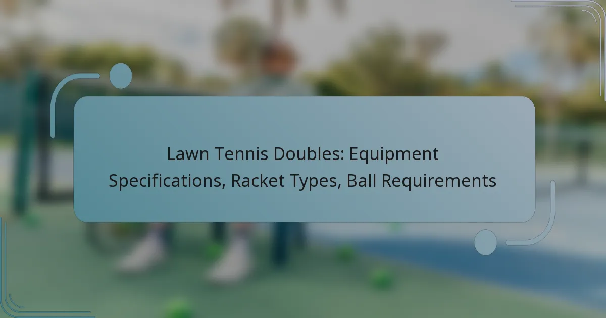 Lawn tennis doubles requires specific equipment specifications, including court dimensions, net height, and appropriate racket and ball types. Selecting the right racket, which balances power, control, and maneuverability, is essential for quick reactions in fast-paced matches. Additionally, using the correct tennis balls, characterized by size, pressure, and felt quality, enhances gameplay and ensures durability and responsiveness.