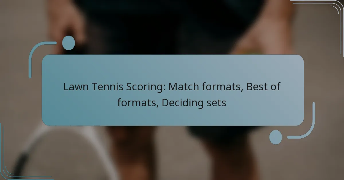 Lawn tennis features various match formats that significantly impact gameplay and strategies, primarily categorized by the number of players and scoring systems. The most common formats include best of three sets and best of five sets, which dictate how many sets a player must win to secure victory. Additionally, deciding sets come into play when players are tied, often requiring a specific margin to determine the winner.