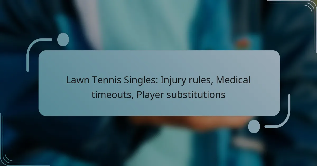 In lawn tennis singles, injury rules are crucial for maintaining player safety and match integrity, detailing what qualifies as an injury and the assessment procedures involved. Medical timeouts provide players with the opportunity to receive necessary medical attention, though these pauses are strictly regulated to ensure fairness. Importantly, player substitutions are not allowed; athletes must finish the match unless they are incapacitated by injury or illness, in which case they may utilize medical timeouts.